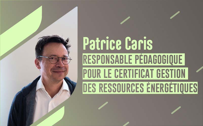 Je m’appelle Patrice Caris, je suis adjoint au directeur des fonctions supports à Gaz Electricité Grenoble. Ma formation initiale est ingénieur en Procédés Industriels avec une spécialisation en Pétrochimie et Polymères. J’ai effectué l’essentiel de ma carrière dans le monde de L’Energie. A ce titre, j’interviens depuis cette rentrée en tant que responsable pédagogique du certificat Gestion des Ressources Énergétiques.